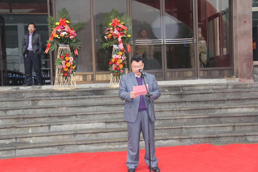 公司董事长、党委书记、总经理梁金刚向职工食堂开业致辞。