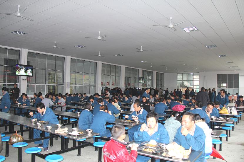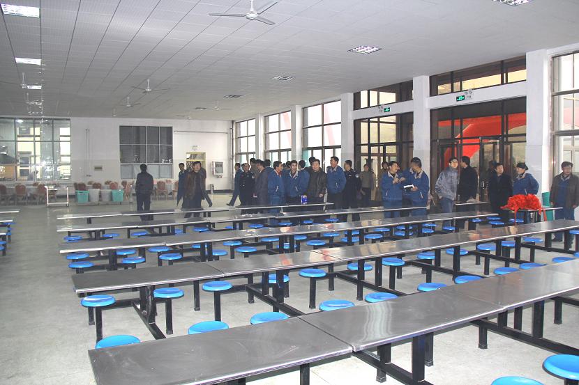 参加公司职工食堂开业典礼的来宾到职工食堂就餐大厅内参观。